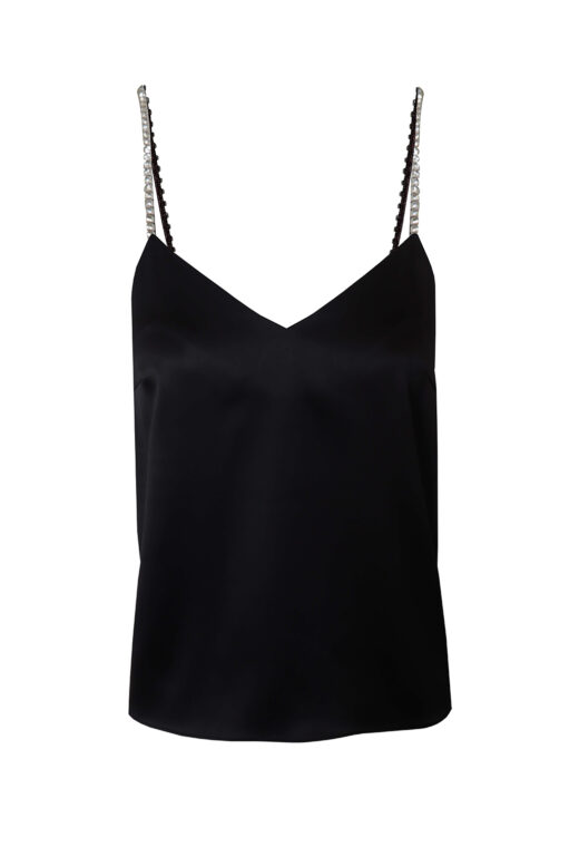 Black crystal-embellished satin camisole