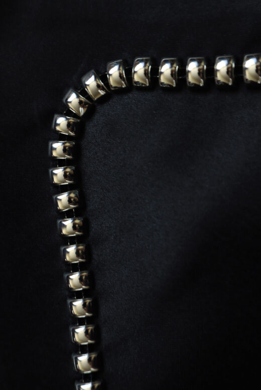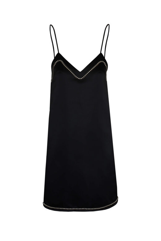 Black crystal-embellished satin mini dress