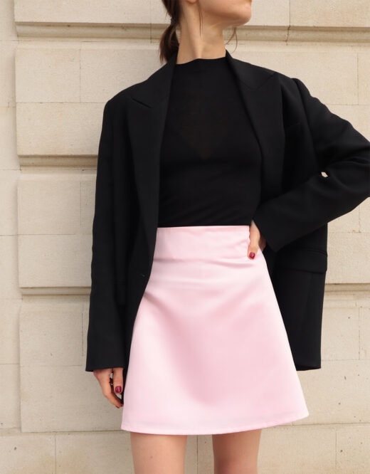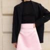 This mini skirt is cut from рink fabric.