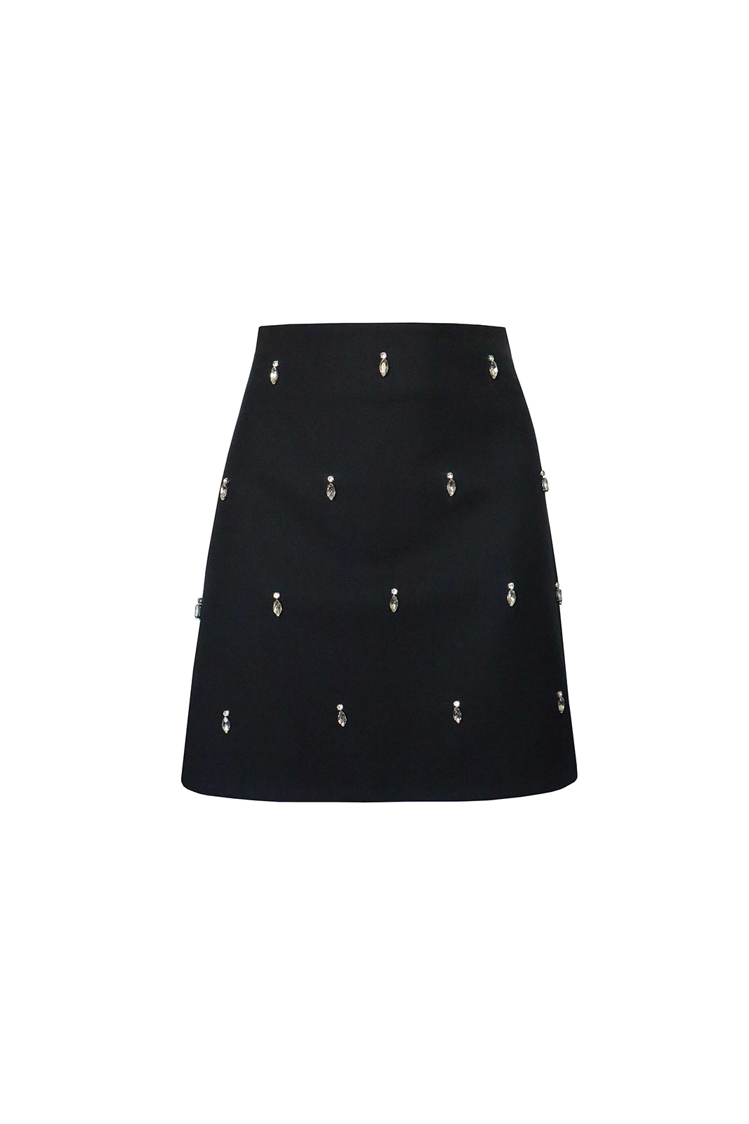 This mini skirt is cut from black fabric. Thе skirt is hand еmbеllishеd with crystals.