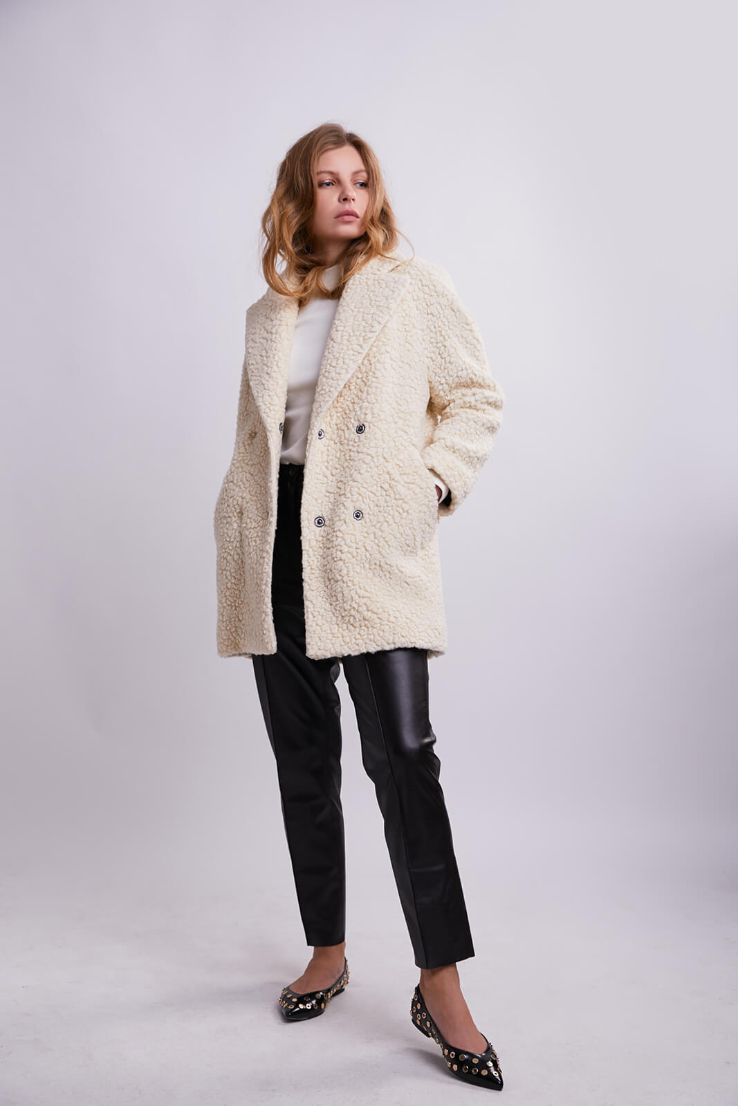 This coat is cut from cream wool blend.
