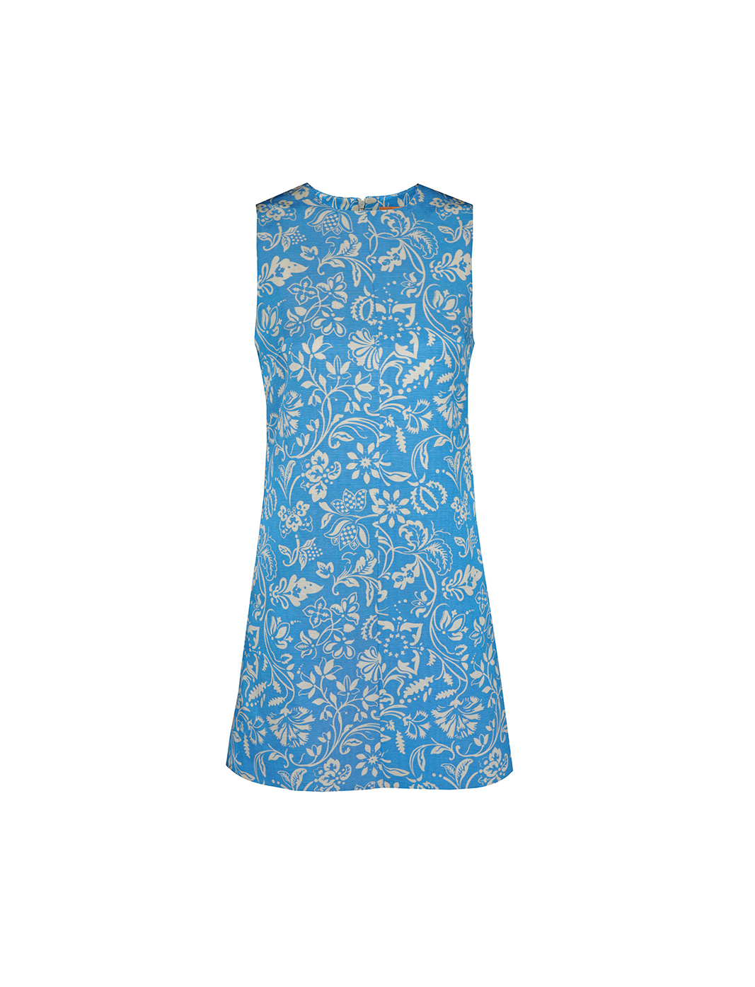 This dress cut from cоttоn-blend in a ’60s-style shift silhouette.