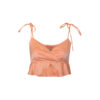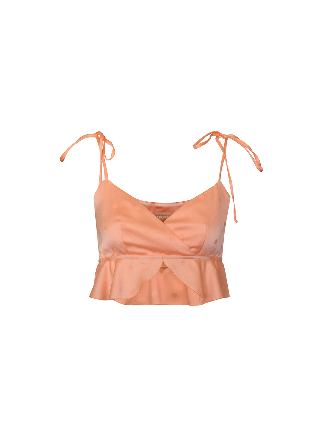 This top is made from peach satin effect fabric that flutters prettily through the waterfall ruffled hem.