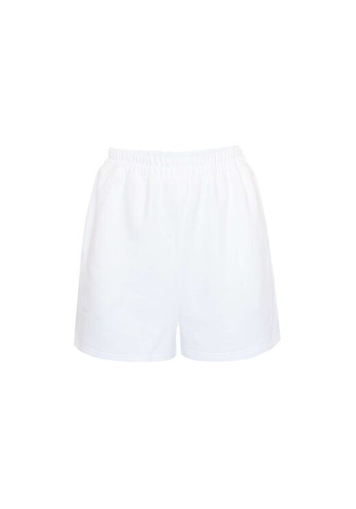 This shorts are made from white cotton. They’re cut for a slightly loose fit and sit on the waist